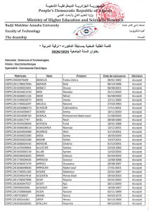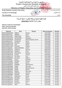 Département de Génie des Procédés – Liste des étudiants concernés par le concours de doctorat 2025/2026 11 janvier 2026 Lire plus»